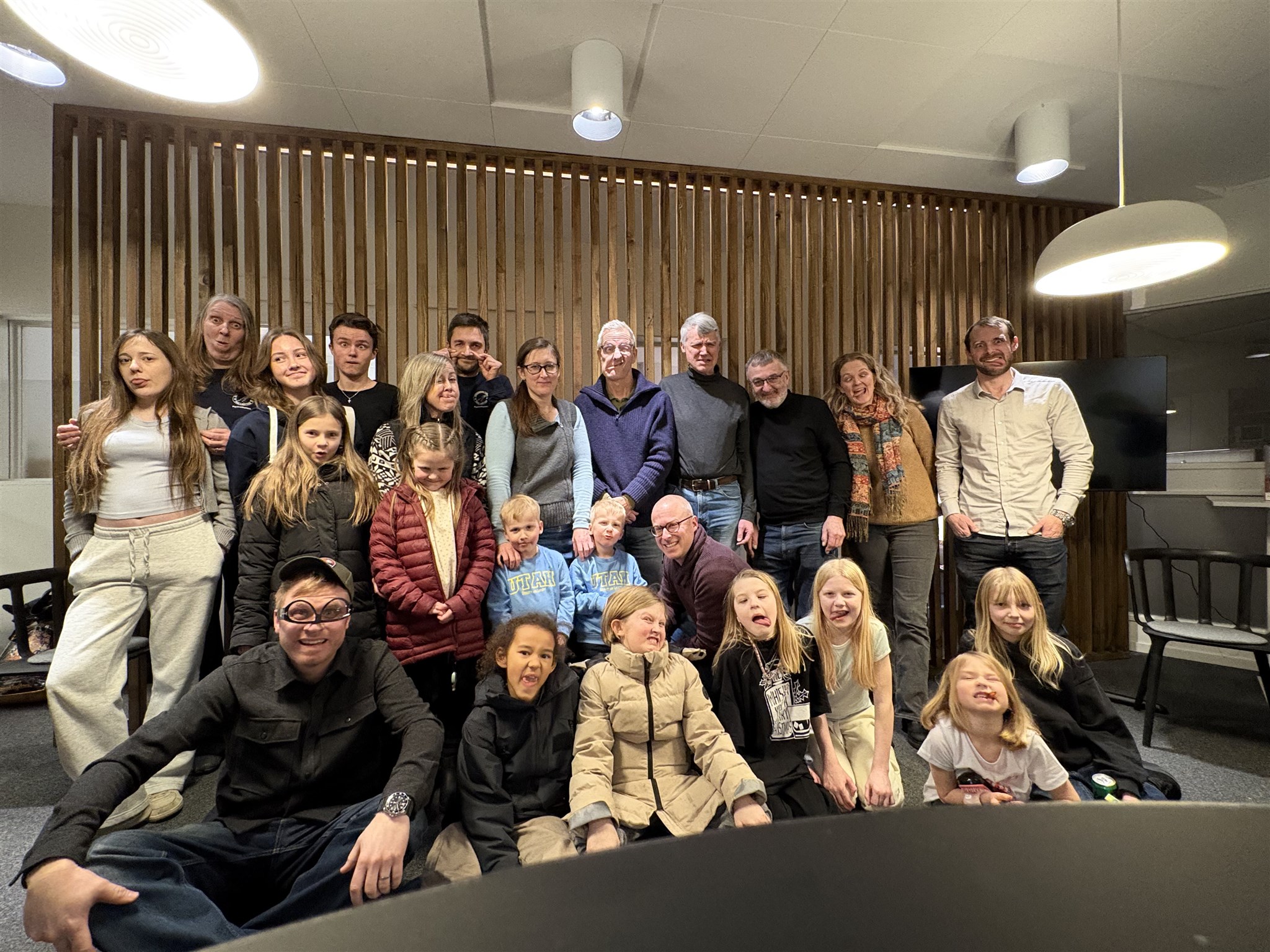 Igår genomfördes ett uppskattad klubbaktivitet utanför isen. Ett 30-tal medlemmar träffades i en samlingslokal på Håjum i Trollhättan och blev bjudna på välkomstfika varefter man gissade på segertid och vinnare innan man tittade på TV och följde Herrarnas OS-skridsko över 5.000 meter. Sedan var det dags att intaga pizzor i stora lass. Därefter var det dags för skridskoövningar med bl a sidohpp och slideboard övningar. Kvällen avslutades med ett SkridskoQuiz och Bingo tillsammans med chips och godis. På bilden ser vi ett glatt skridskogäng, vilken haft en helkväll i skridskons tecken.