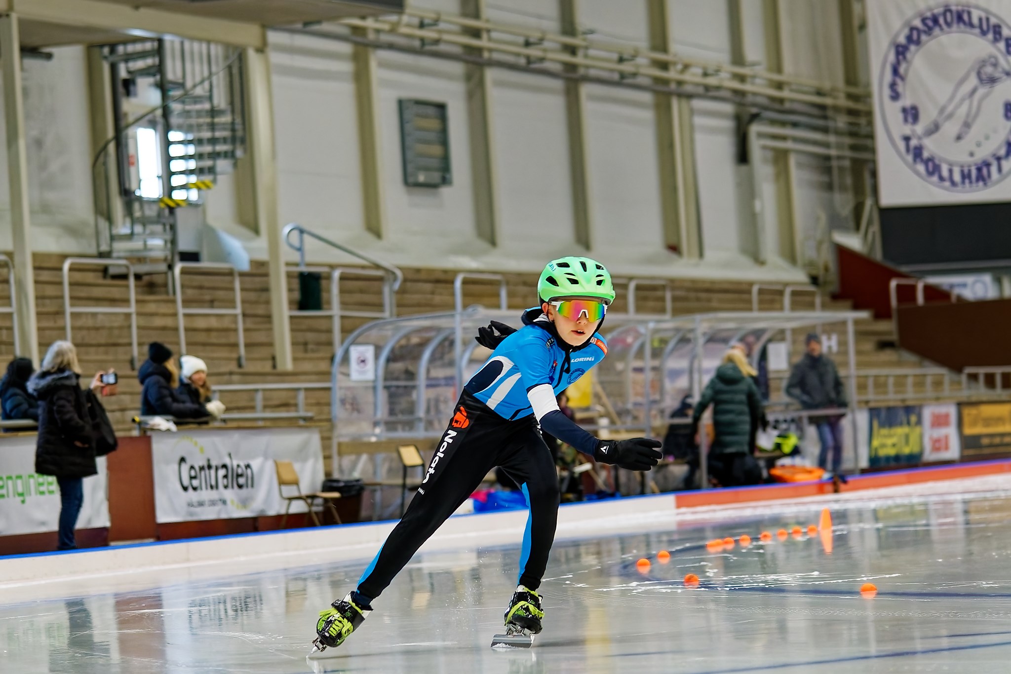 I Helgen 29-30 november körs en av Norges största ungdomstävlingar i Vikingskipet, där 213 åkare kommer till start. Från Trollhättan kör Hilla Rosén i Flickornas 13 årsklass och Loke Forsell kör i Pojkarnas 14 årsklass. Dag-1: På inledande 500 meter 'persade' såväl Hilla som Loke, Hilla med 2,4 och Loke med 1,2 sekunder. Sedan var det dags för Hilla att köra ovanliga distansen 700 meter för första gången. Loke hade 1000 meter som andra distans och 'persade' med 2,0 sekunder. Dag-2: Loke förbättrade årdagens 'pers' på 500 meter med ytterligare 0,6 sekunder och fick tiden 43,41. Hilla var endast 0,04 sekunder från gårdagens 'pers' och fick idag 51,39. På 1000 meter sänkte Hilla sitt 'pers' med 4,2 sekunder och fick 1.50,91. Loke avslutade helgen med ytterligare ett 'pers', nu på 1500 meter, den är nu på 2.23,19, en sänkning med 4,7 sekunder. Vi gratulerar såväl Hilla och Loke till en fantastisk fin skridskotävling, totalt blev det 7 nya personliga rekord. Nedan följer deras resultat: